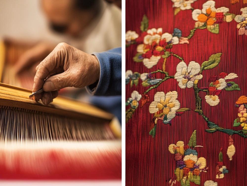 The charm of brocade stems from its unique weaving process. Every step from raw material selection to the completion of the final product embodies the dedication of craftsmen. First, high-quality silk is carefully selected and undergoes multiple processes such as scouring and dyeing to produce threads with pure colors and strong toughness. Then, based on the designed patterns, craftsmen arrange complex warps and wefts on the flower tower (a component of traditional weaving looms). For some brocades like Nanjing Yunjin, the pre-weaving “tiaohua jieben” (pattern drafting by tying knots) process alone can take several months or even years—craftsmen need to convert the design into a “pattern book” woven with silk threads, which serves as a “blueprint” for weaving. During the weaving process, craftsmen sit in front of the flower tower loom, lifting the pattern with one hand and throwing the shuttle with the other. Weaving just one inch of brocade often requires thousands or even tens of thousands of interweavings of warps and wefts. Taking the “zhuanghua” technique of Yunjin as an example, craftsmen need to constantly change wefts of different colors while weaving. Through the method of “interrupting wefts while keeping warps continuous”, the patterns achieve rich and varied colors. A Yunjin work of medium complexity usually requires the cooperation of two craftsmen and takes several months to complete, which clearly demonstrates its preciousness.