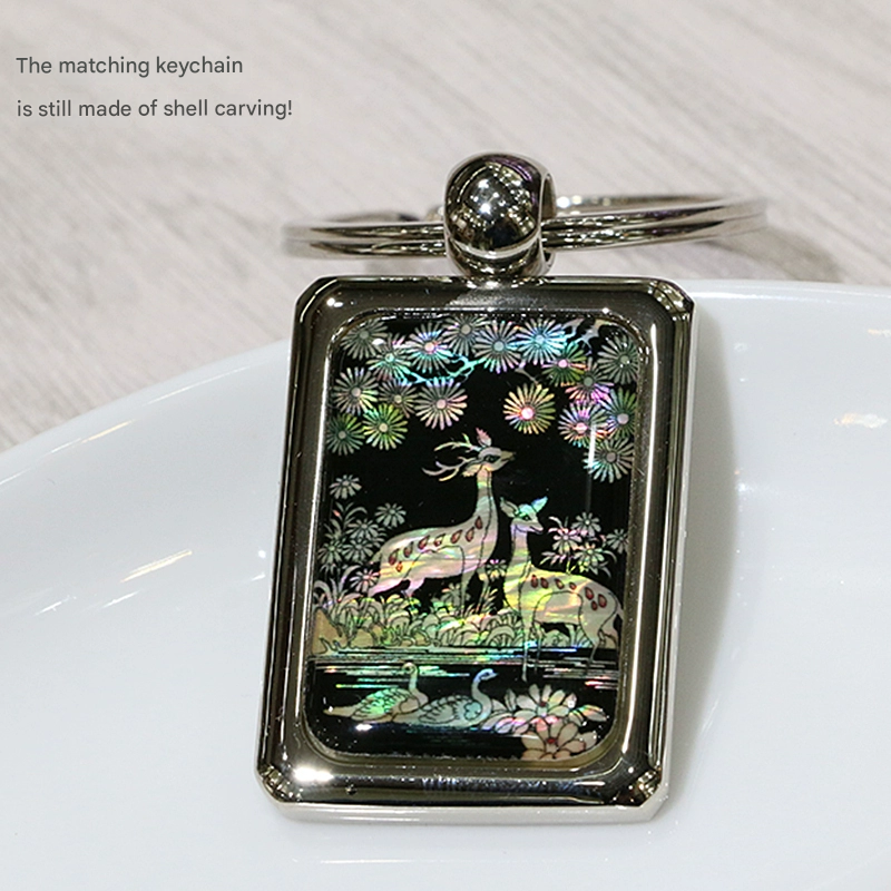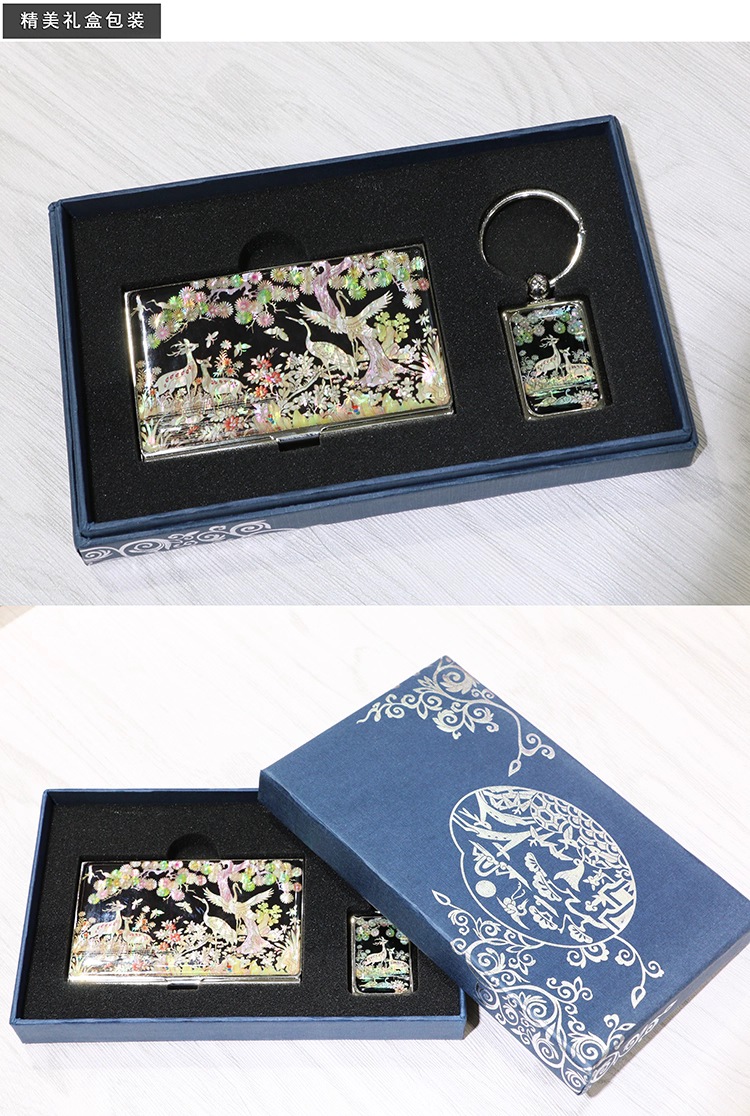 Product Name: Mother-of-pearl shell carving business card box keychain set
