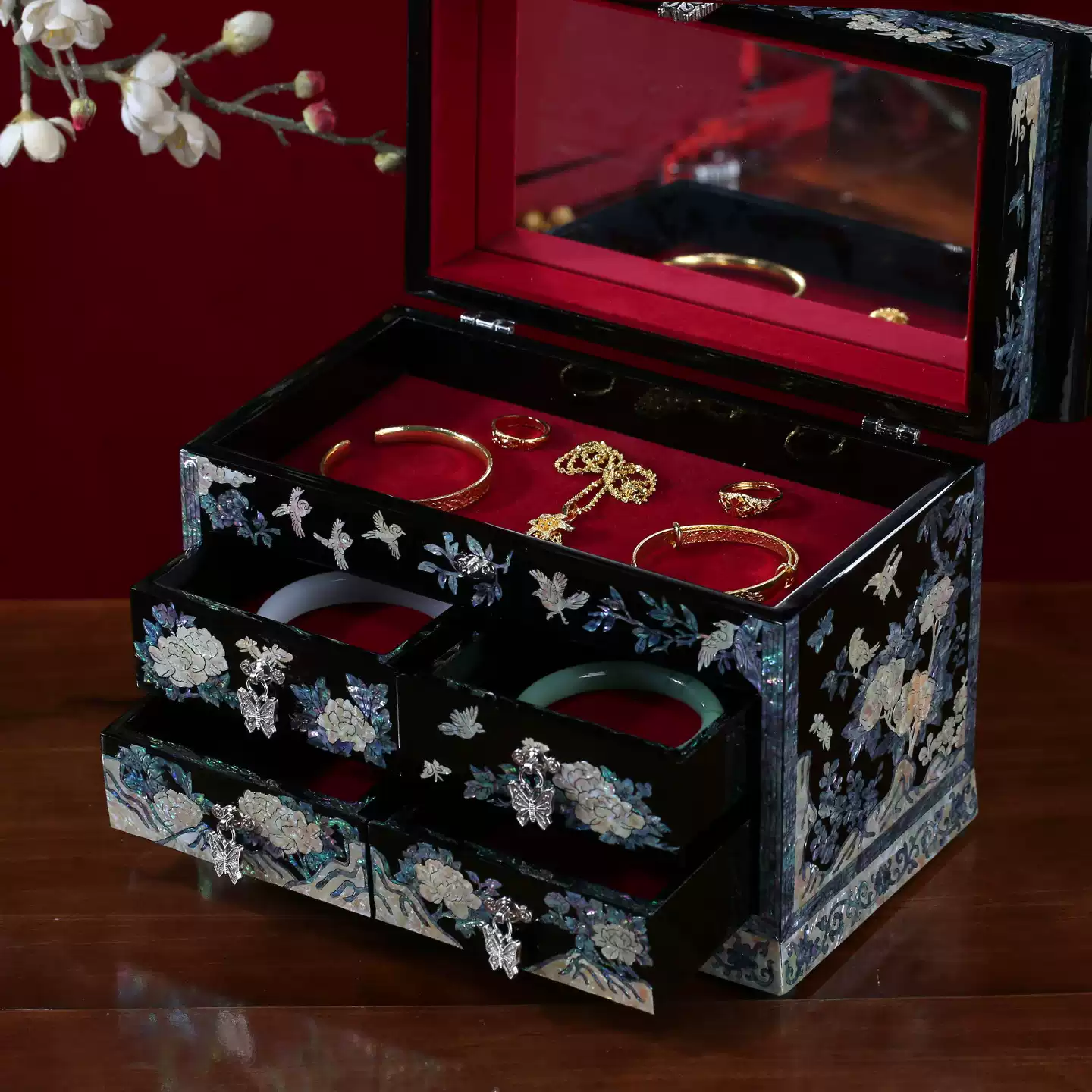 Be the first to review “Mother-of-pearl lacquerware jewelry cabinet desktop jewelry box traditional mother-of-pearl handicraft home decoration high-end gift box” Cancel reply