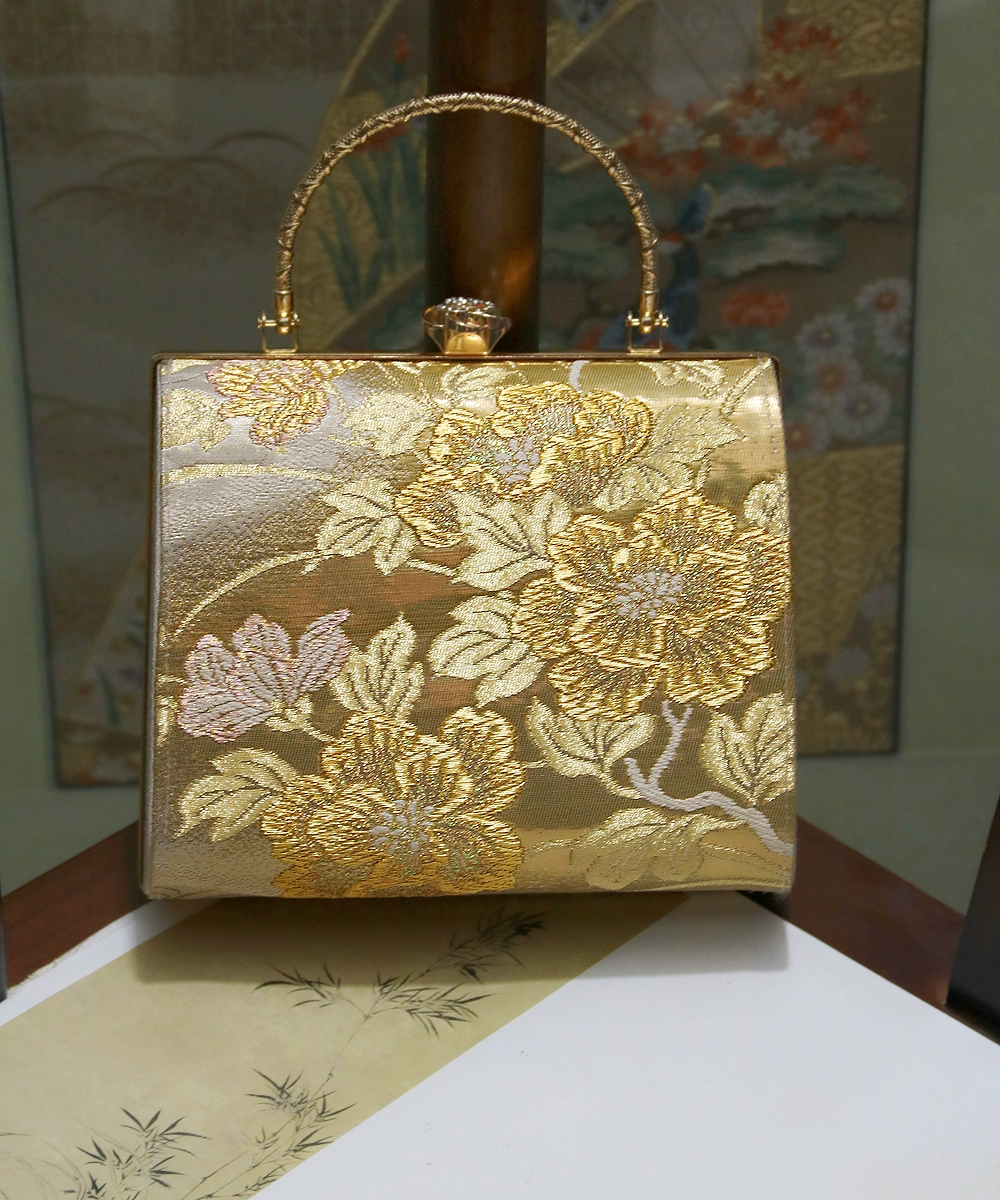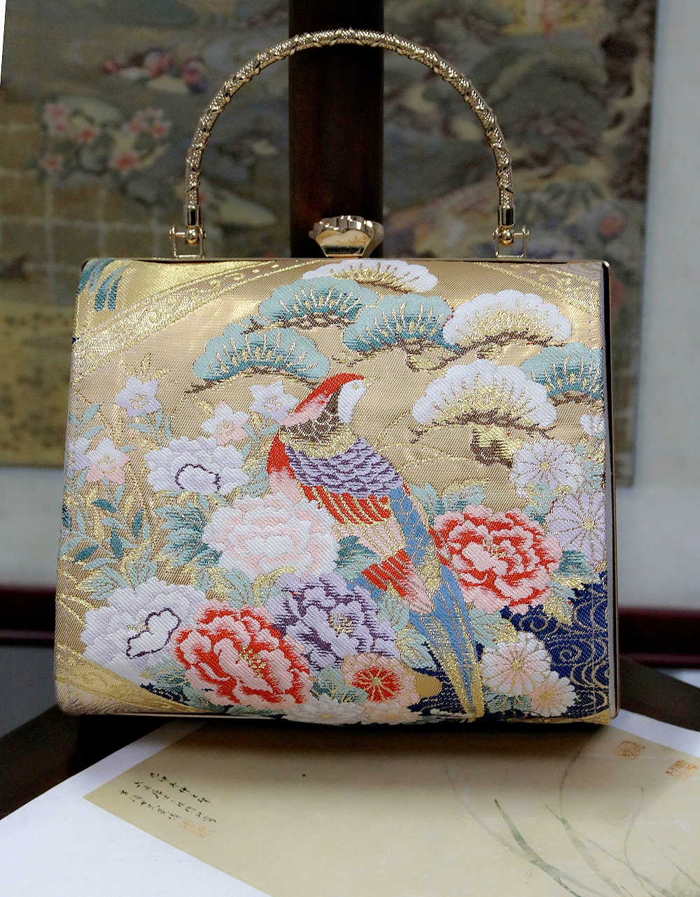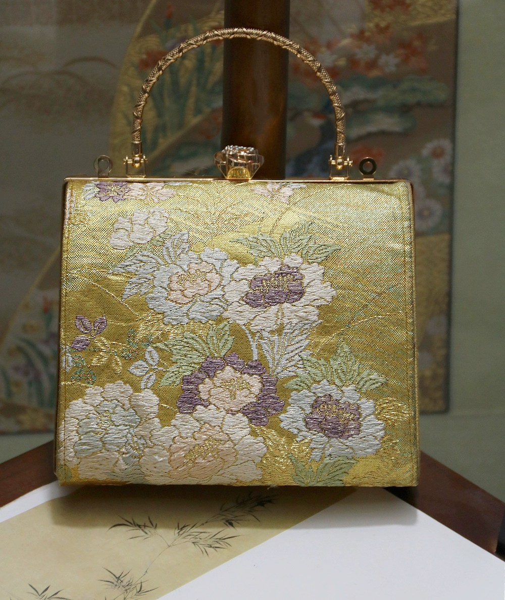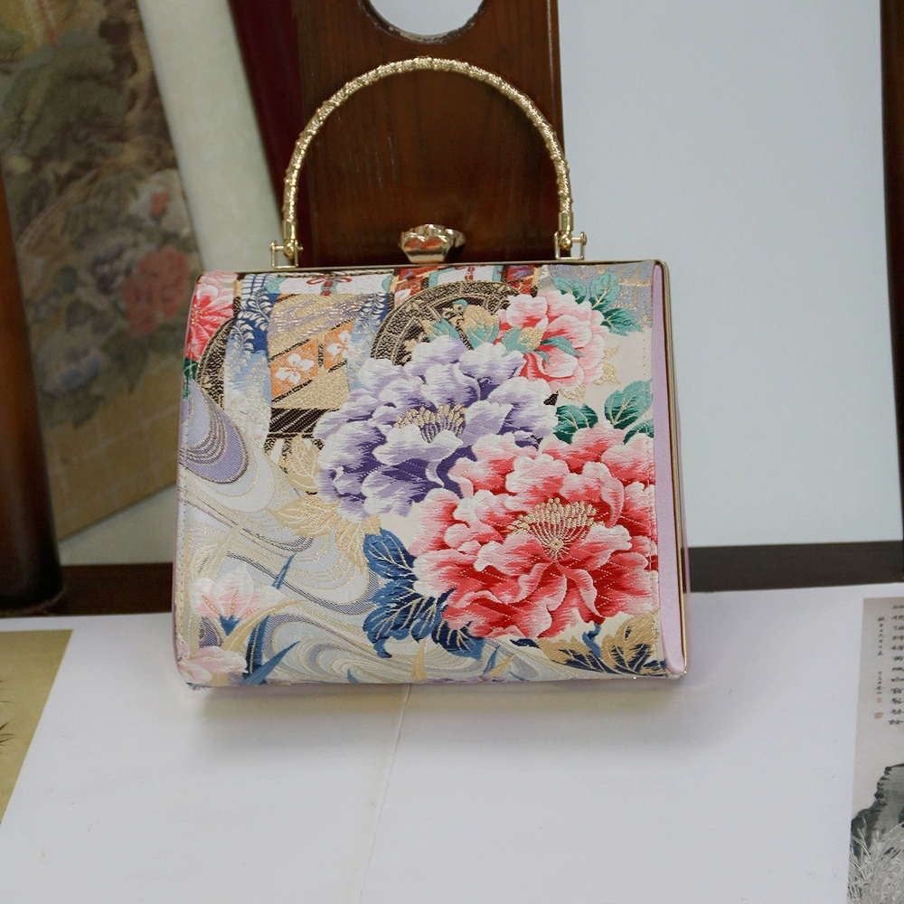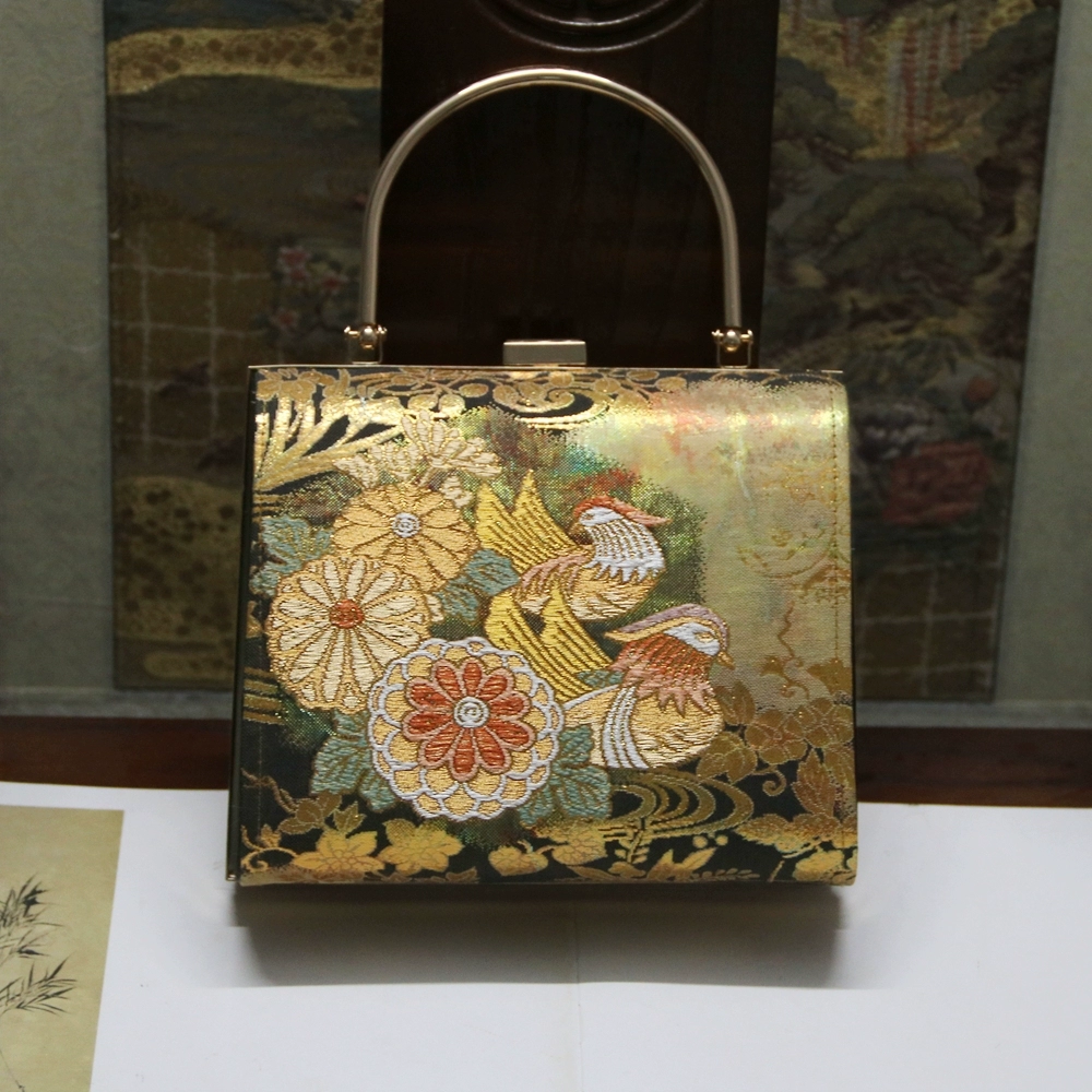 Retro Nishijin woven handbag, one shoulder crossbody, Chinese cheongsam, ancient Chinese Tang style brocade mouth gold bag