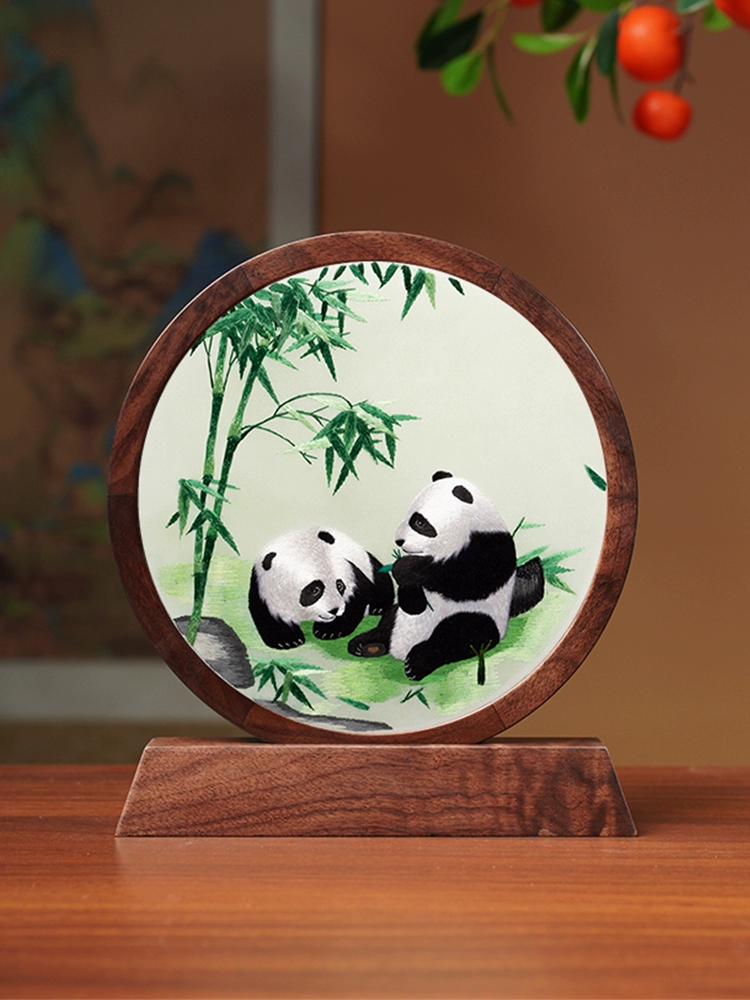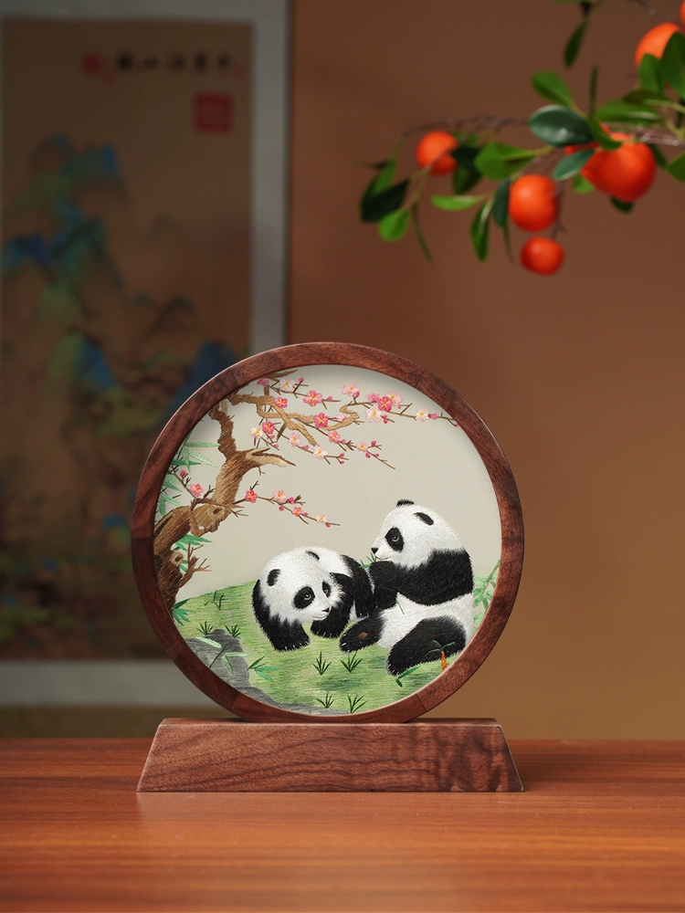 Suzhou embroidery double-sided embroidery ornaments embroidered panda table Shu embroidery Chinese characteristics souvenirs for foreigners
