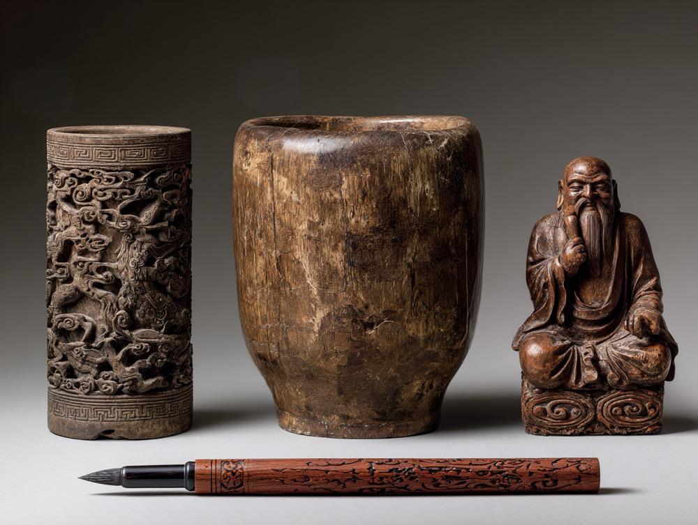 The history of wood carving and bamboo carving dates back to prehistoric times, when ancient ancestors used simple tools to carve wood and bamboo objects for rituals and daily life. During the Shang and Zhou dynasties, wood carving techniques matured; the wooden ritual vessels unearthed from the Yin Ruins already featured exquisite taotie patterns and cloud motifs. In the Warring States period, bamboo carving emerged: the bamboo carved tube from the Tomb of Marquis Yi of Zeng, with its delicate texture, testified to the superb level of early bamboo carving. In the Tang Dynasty, wood carving and bamboo carving integrated Buddhist culture—wooden Buddha statues and bamboo carved sutra rolls in temples combined religious solemnity with artistic beauty. The Song Dynasty saw literati participate in carving creation, transforming wood carving and bamboo carving from practical utensils into literati’s elegant playthings. Themes expanded to landscapes, flowers, birds, and figures, with styles becoming increasingly refined. The Ming and Qing dynasties marked the golden age of wood carving and bamboo carving: wood carving formed regional schools such as Dongyang Wood Carving, Boxwood Carving, and Chaozhou Wood Carving—Dongyang Wood Carving excelled in relief carving, Boxwood Carving was famous for round carving, and Chaozhou Wood Carving displayed luxury with gold lacquer decoration; bamboo carving was represented by Jiading Bamboo Carving and Jinling Bamboo Carving—Jiading Bamboo Carving was skilled in deep relief and openwork, while Jinling Bamboo Carving specialized in shallow carving. Masters like Wen Peng and Pu Zhongqian emerged, and their works became favorites among literati collectors.