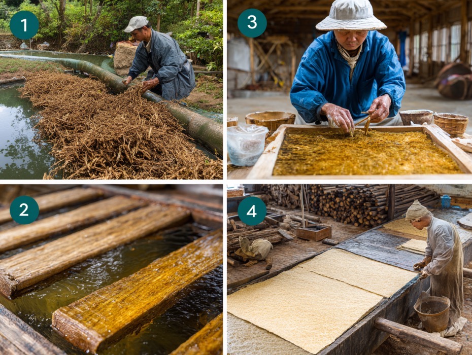 The charm of Xuan Paper first lies in its unique raw materials and strict production process. The core raw material, “sandalwood bark”, is only produced in Jing County and the surrounding mountainous areas. Its tough and elastic fibers are the key to Xuan Paper’s “anti-aging and moth-resistant” properties. When paired with the local unique sand-field rice straw (with fine fibers and low silicon content), after repeated soaking, boiling, and beating, a unique interwoven fiber structure is formed, endowing Xuan Paper with both toughness and water absorbency. From raw materials to finished products, Xuan Paper goes through “108 processes” and takes more than a year: sandalwood bark is harvested in spring, rice straw is soaked in summer, pulp is beaten in autumn, and paper is fished and dried in winter—each step must conform to seasonal changes. Among these, “paper fishing” is the core process: craftsmen hold a bamboo screen and gently dip it into the pulp tank, allowing fibers to evenly attach to the screen. A slight deviation in strength or speed will affect the paper’s quality. “Paper drying” requires slow drying on a specially made paper 烘焙 (baking frame), using natural sunlight and breeze to create the paper’s natural texture and warm luster. It is this “collaboration between humans and nature” that gives Xuan Paper the property of “remaining intact for a thousand years”—the Tang and Song Dynasty calligraphy and painting works on Xuan Paper preserved in the Palace Museum still retain their original colors after hundreds of years, confirming the reputation of “millennium-lasting paper”.